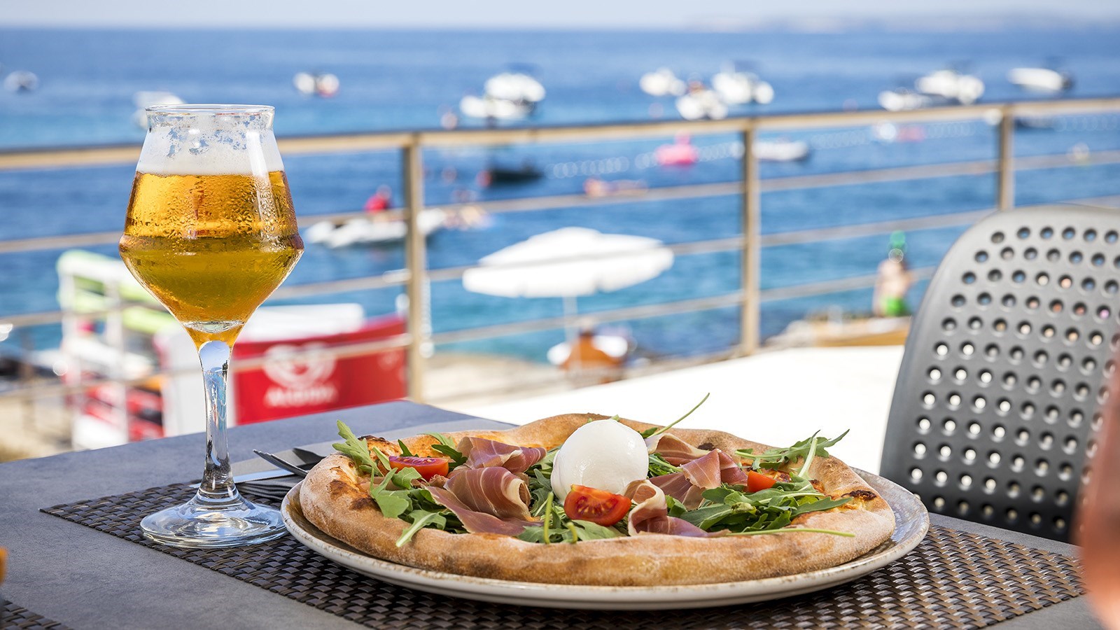 Wählen Sie ein Grillgericht, das Tagesmenü oder eine Pizza und genießen Sie ein erfrischendes Getränk während Ihrer Nachmittagspause oder abends bei leichter Musik auf der Terrasse unseres Restaurants.