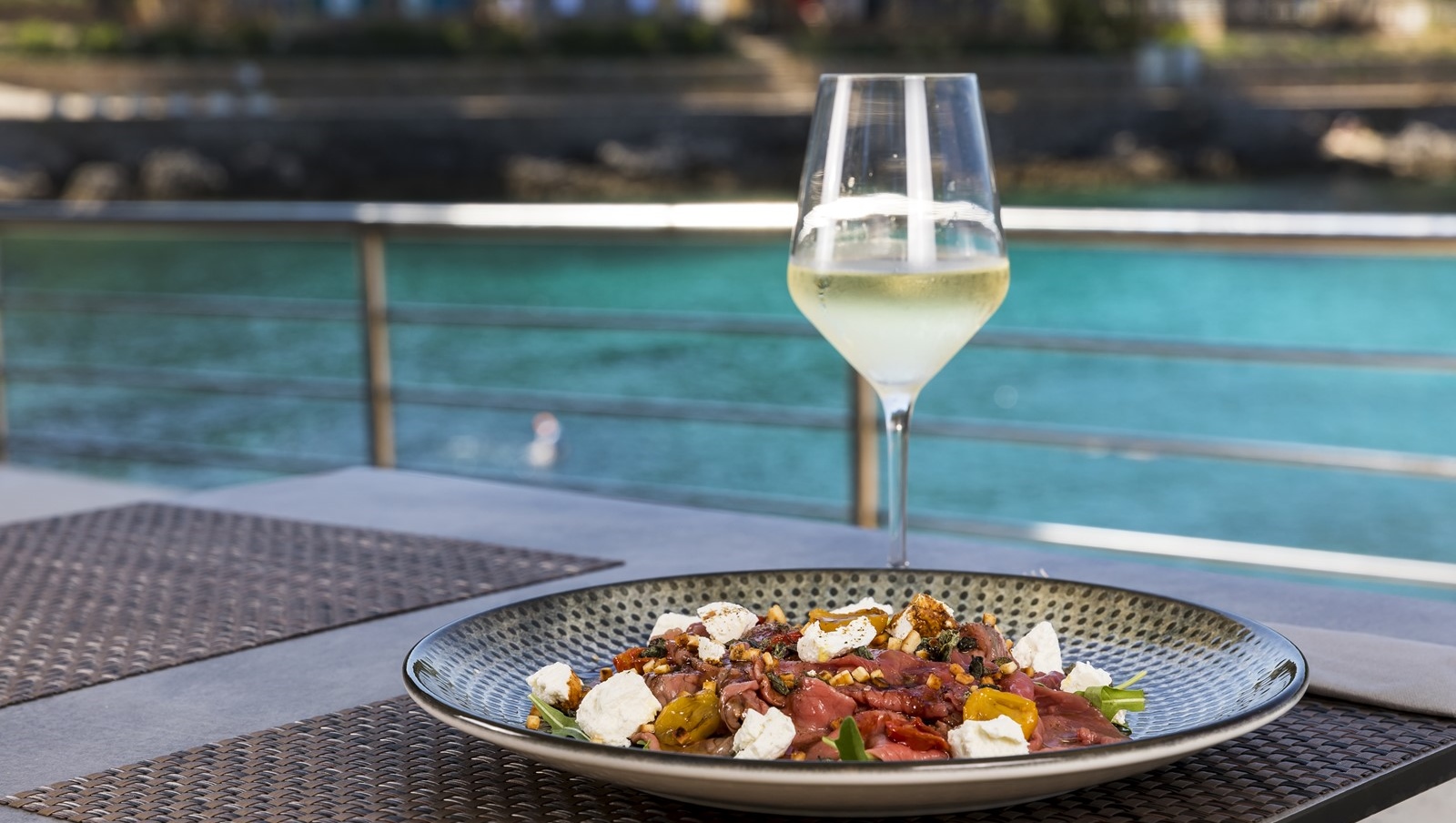 Select a barbecue dish, the daily menu or a pizza and have a refreshing drink during your afternoon break or in the evening with light music on our restaurant’s terrace.