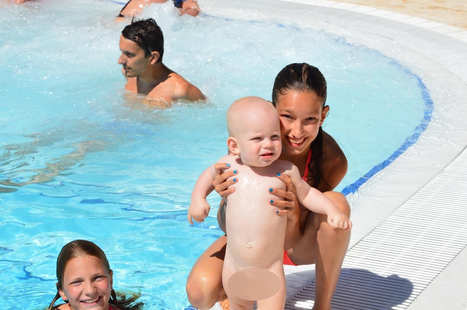 - Due piscine poco profonde, una per i bambini, l’altra per i bebè, collegate da un acquascivolo.