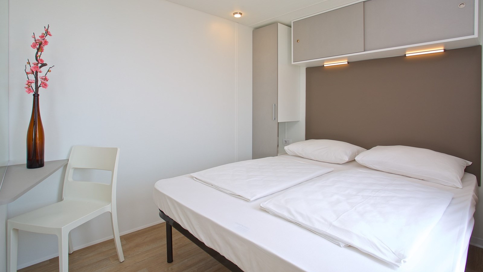 - Zakwaterowanie we w pełni wyposażonym domku stacjonarnym typu C z możliwością ogrzewania